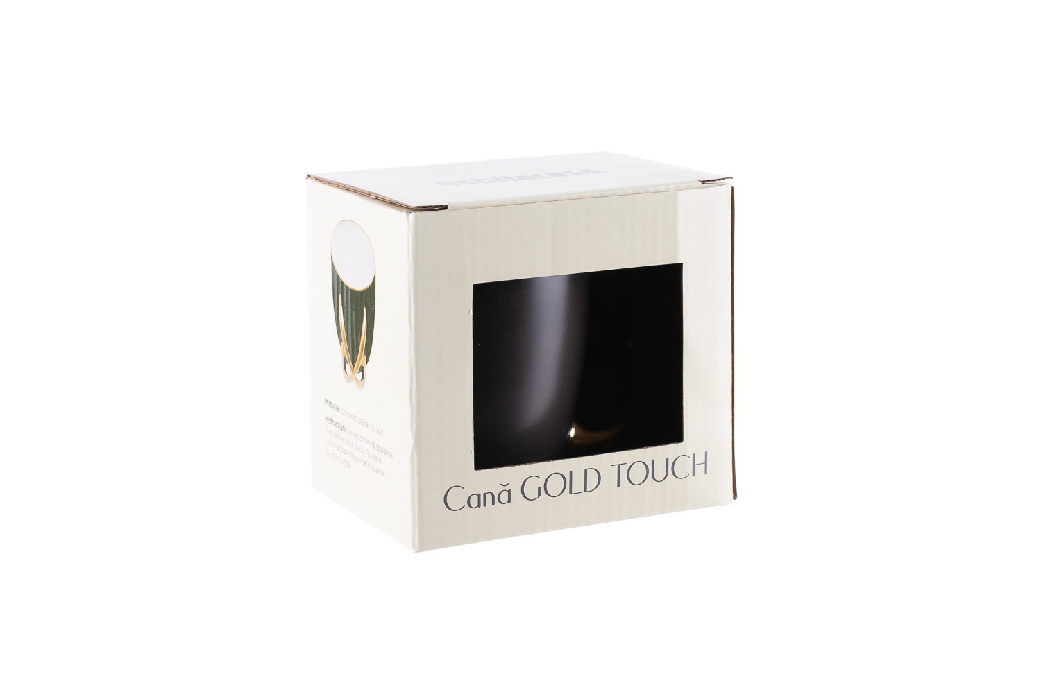 20 de ani de #impreunacutine ne-au invatat cateva lucruri. Printre ele, ca sunteti creativi, inspirati de frumos si mereu gata sa transformati masa, bucataria sau cadourile in momente de exprimare a personalitatii voastre. De aceea, cu ocazia aniversarii a 20 de ani de Nobila Casa, am propus clientilor nostri un concurs de design in urma caruia am selectat produsul care sa ne reprezinte cel mai bine! Astfel, Cana Gold Touch a fost creata de artistul Adrian Popesc - castigatorul concursului nostru. Cana este realizata din portelan si este placata cu aur.